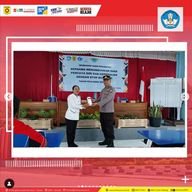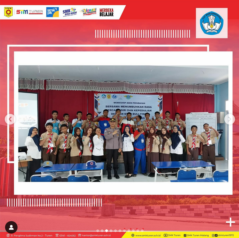 Kegiatan Workshop Agen Perubahan SMK Turen Tahun Ajaran 2024-2025, Kegiatan ini berlangsung selama 2 hari, hari pertama di isi pemateri dan pembekalan oleh Bapak Kapolsek Turen dan dilanjutkan Pembekalan dari Bapak Ibu Tim BK SMK Turen.