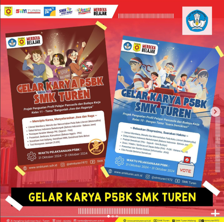 s Pelaksanaan Kegiatan Projek Penguatan Profil Pelajar Pancasila dan Budaya Kerja (P5BK) SMK (STM) Turen dilaksanakan mulai tanggal 21 Oktober – 31 Oktober 2024 sebagai bentuk implementasi Kurikulum Merdeka Belajar. #stmturen #smkturen #stmturen1972